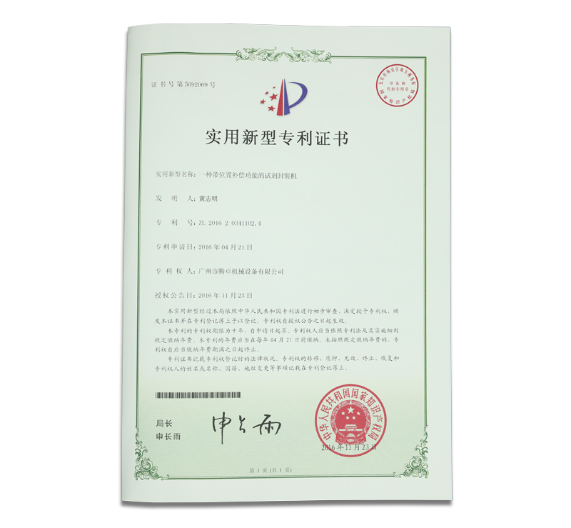 騰卓機械專利生產(chǎn)證書,專業(yè)制造包裝設(shè)備的生產(chǎn)廠家,全自動及半自動的洗瓶機,烘干機,灌裝機,旋蓋機,貼標機,套標機,打碼機等非標定制自動化包裝生產(chǎn)線